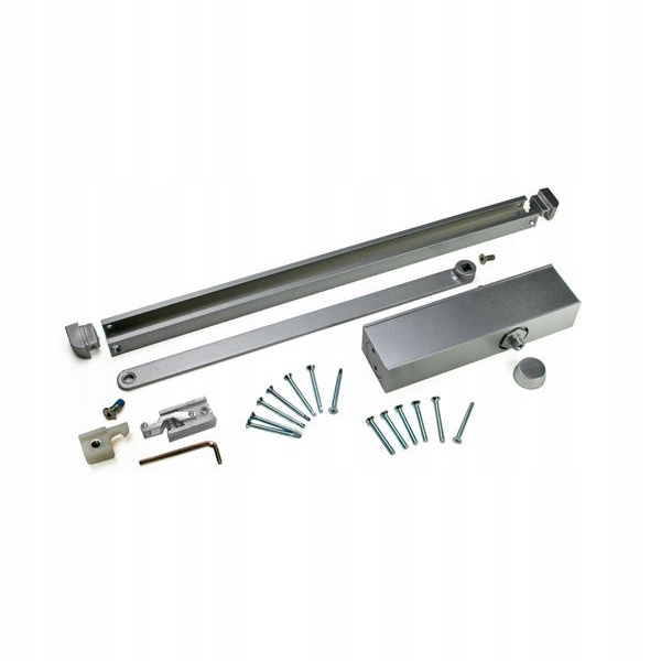 Samozamykacz srebrny szynowy, z ramieniem ślizgowym do drzwi w bramach segmentowych